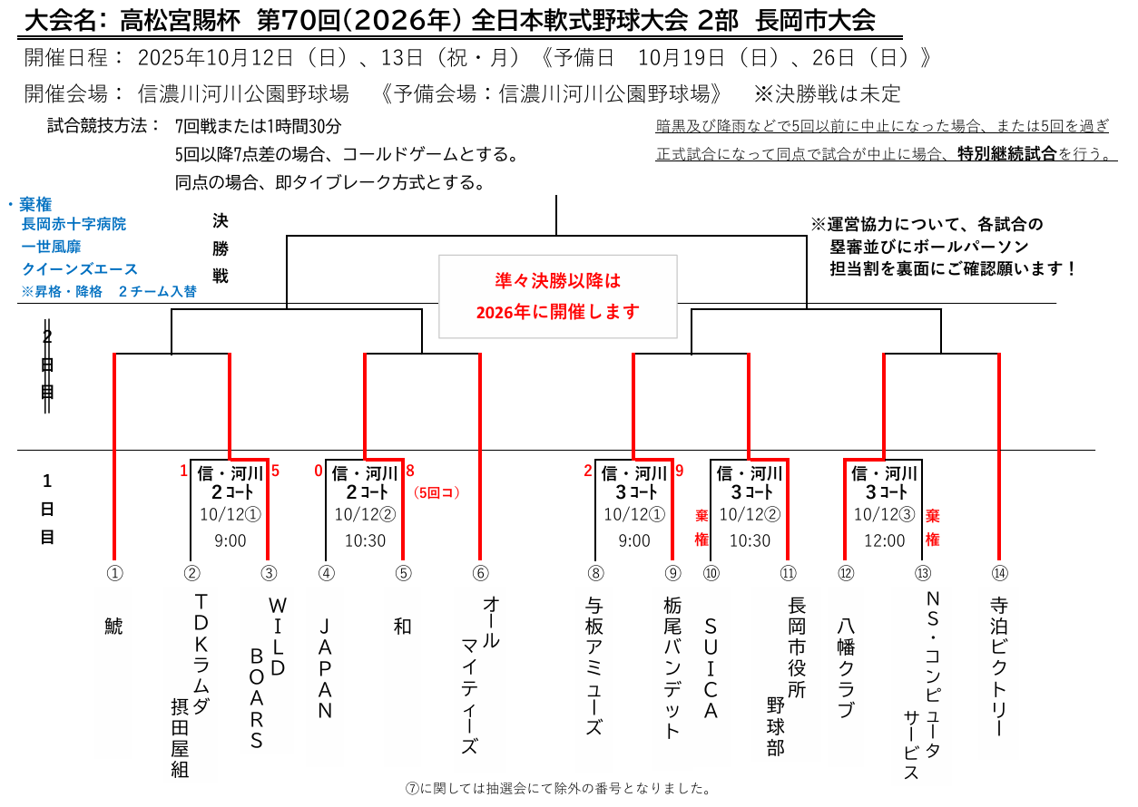 【1日目結果】令和8年度 高松宮賜杯 第70回全日本軟式野球大会 2部 長岡市大会