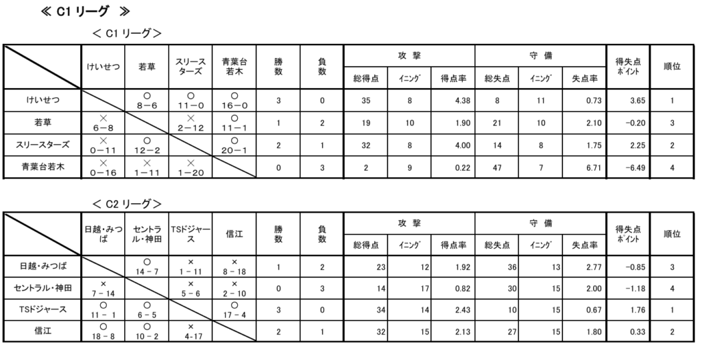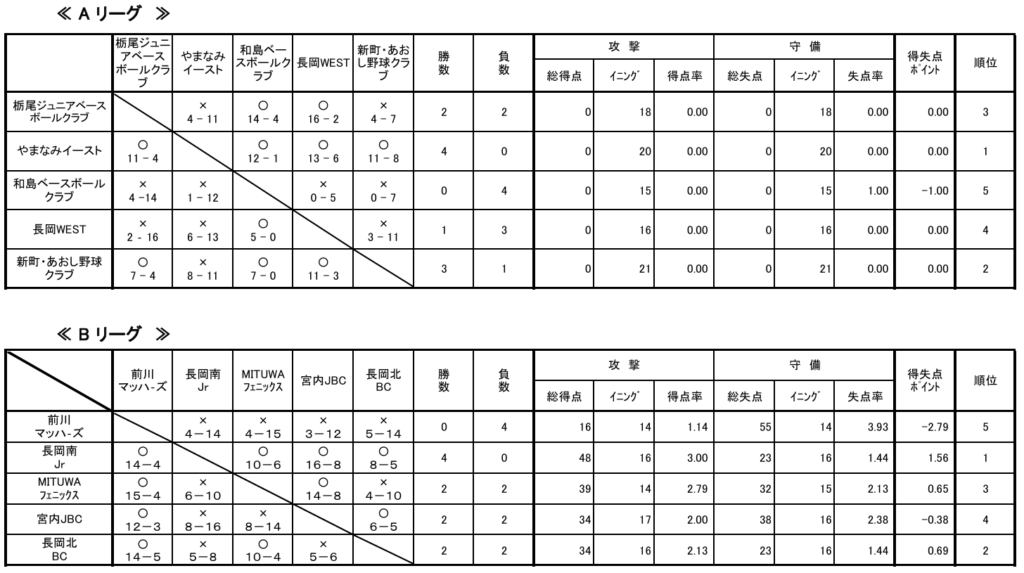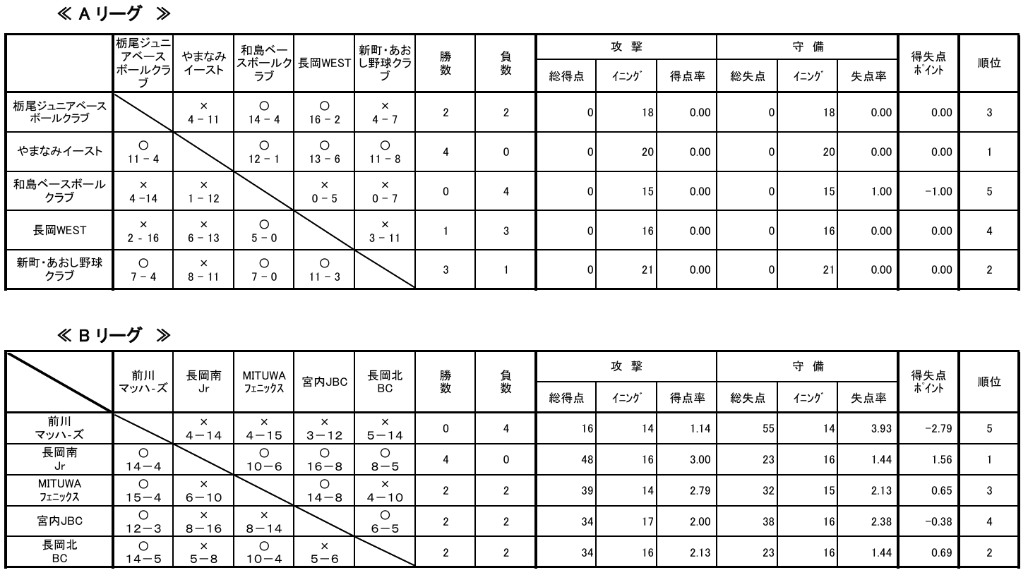 令和7年度 第25回長岡市スポーツ少年団 軟式野球新人交流大会 結果表