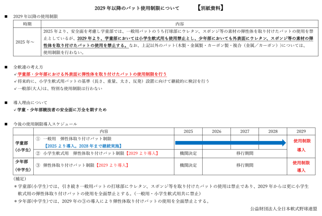 2029年以降の少年部(学童・少年)バット使用制限について|ニュース|公益財団法人 全日本軟式野球連盟